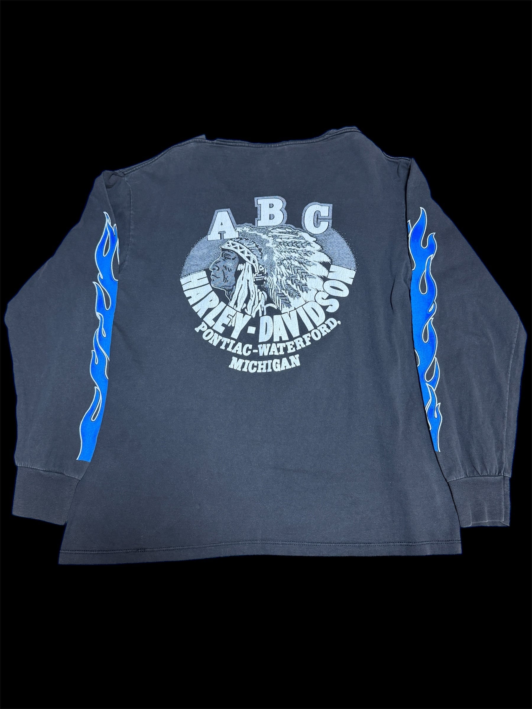 HARLEY DAVIDSON "BLUE FLAME" cut off neck LS